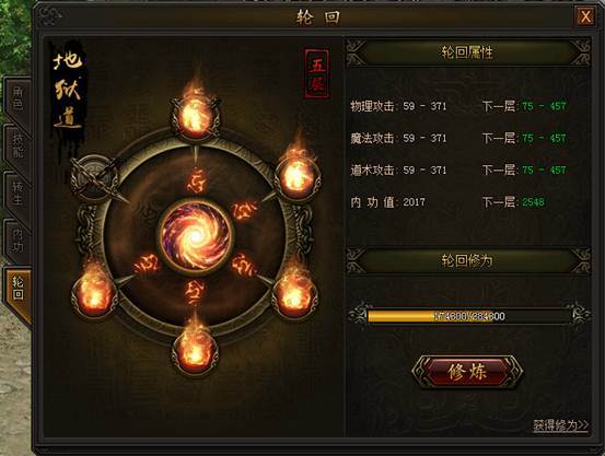 点击“修炼”按钮即可提高轮回阶层,获得强大的轮回属性加成。